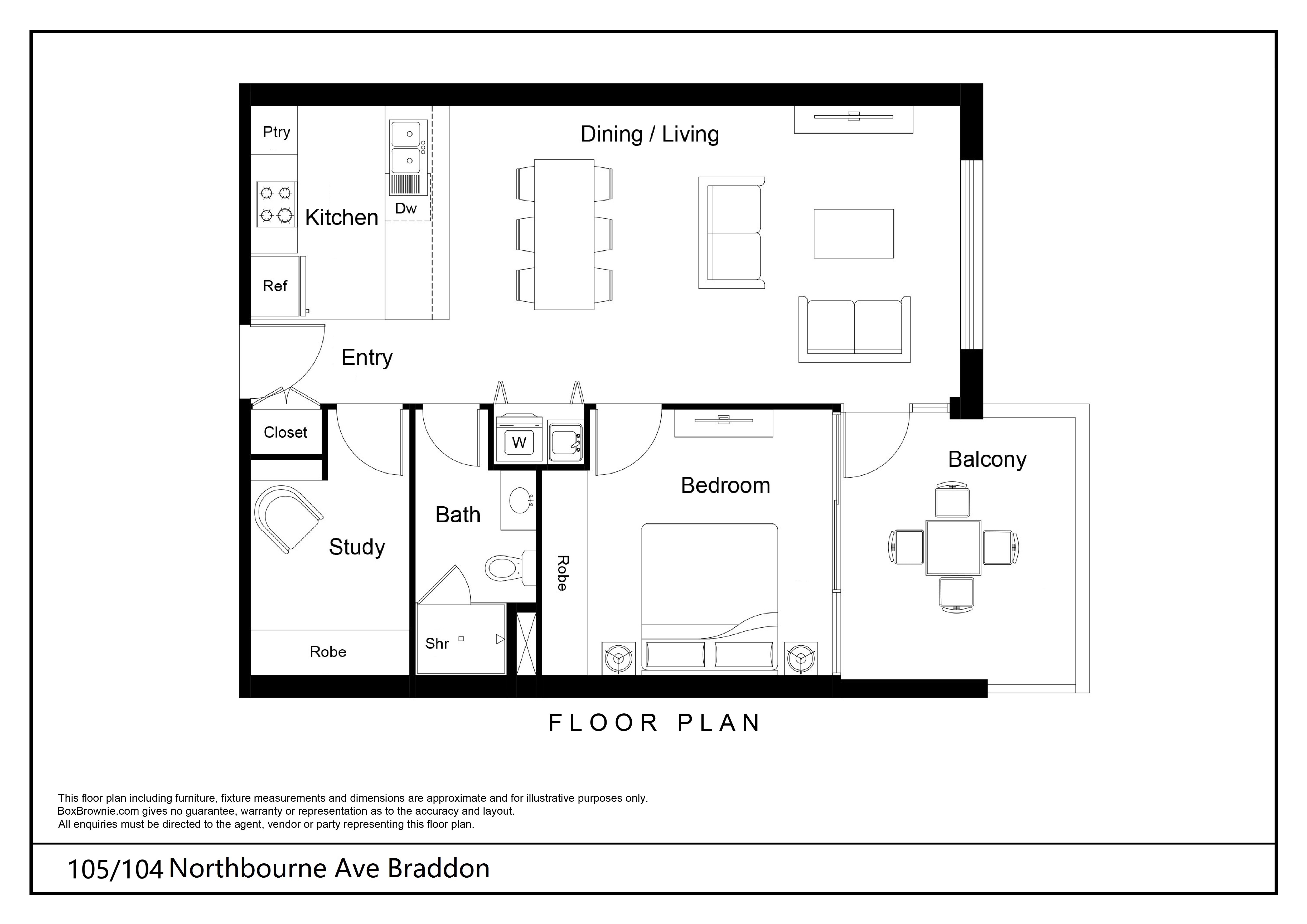 This apartment features 1 bedroom + 1 study (both with built ins). The large, open plan design and large all-weather terrace/balcony leading from the spacious living area and master bedroom connects the apartment with the outdoors and primes this space for relaxing and entertaining – a rarity among city apartments.