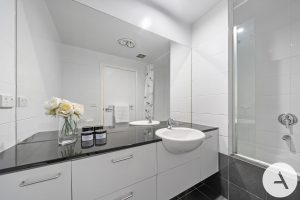 Bespoke local and recycled timber features including a breakfast bar, study nook workspace and internal window detail, creating warmth and functionality rarely found in comparable apartments. Contact us for more information and confirm your appointment today!
