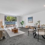 Inside, the home opens with generosity. The living and dining space is broad and light-filled, with a lovely softness created by the northerly aspect and the easy flow of natural sun throughout the day. Large sliding doors extend the interior outward, connecting to a spacious private courtyard that feels both open and sheltered – a quiet place for morning coffee, potted greenery, or evenings shared with friends.
